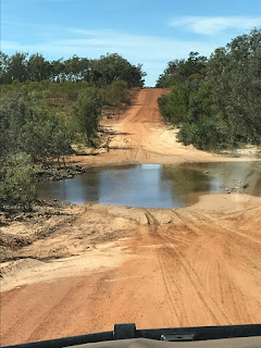 Over the last week or more, we have crossed so many creeks - I think I have to call them waterways as labels like creek conjures up something sweet and bubbling somehow and not at all like what we have been encounter - some dry, some steep narrow gullies which challenge the caravan, wide stretches of water, rocky outcrops, bearing evidence of floods with flattened trees. Some which were 300-400m wide with warnings not to walk across! I can't help but wish I could see it all in the wet. Of course access would be somewhat difficult! and that's the time when crocs wander the 'roads'. Did I mention that during a recent big wet in Katherine, they found a croc in the supermarket when the water subsided! Eek!!!!
